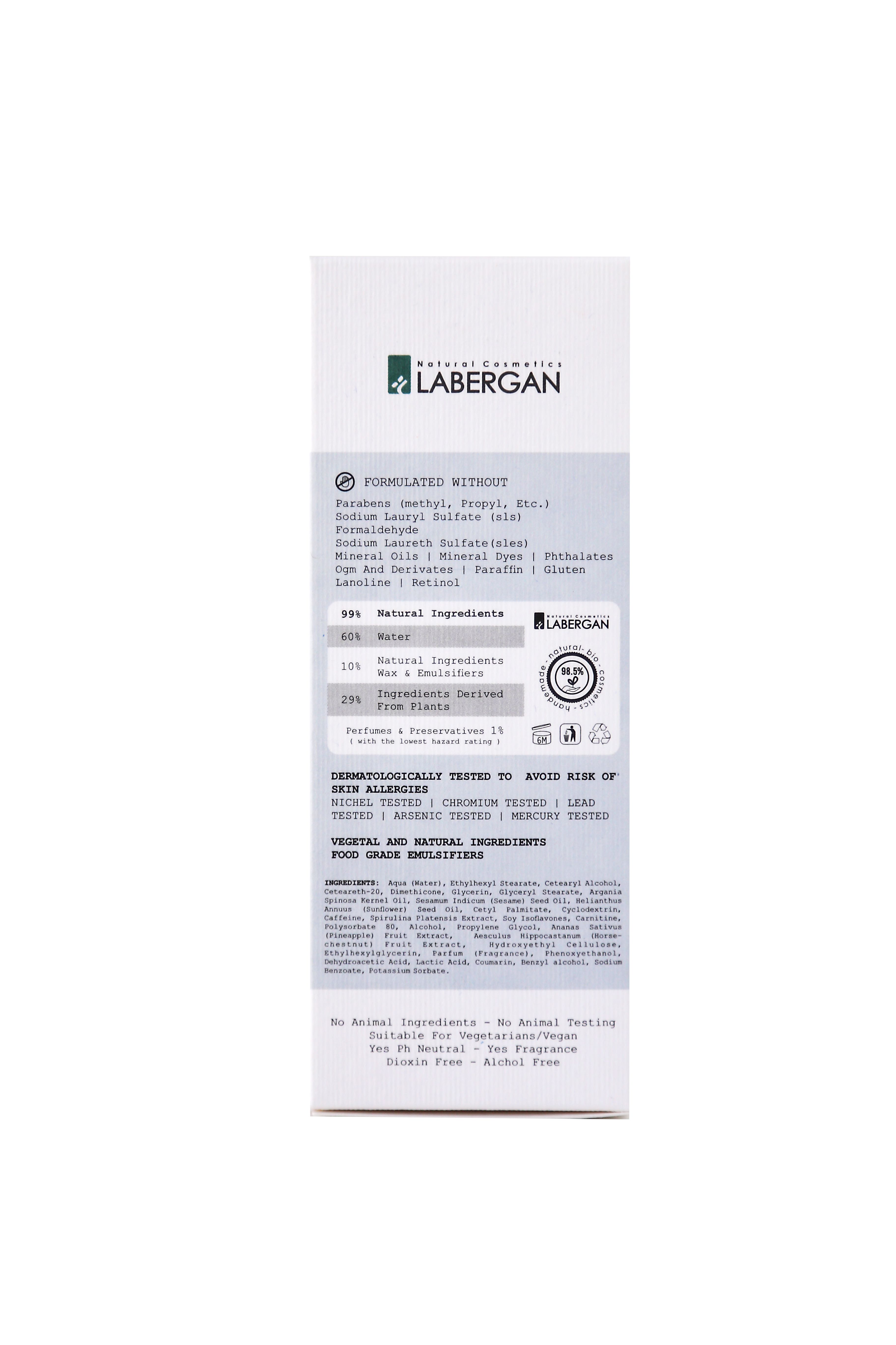 ΣΥΣΤΑΤΙΚΑ/INGREDIENTS :Aqua, Ethylhexyl Stearate, Cetearyl Alcohol, Ceteareth-20, Dimethicone, Glycerin, Glyceryl Stearate, Argania Spinosa Kernel Oil, Sesanum Indicum Seed Oil, Helianthus Annus Seed Oil, Cetyl Palmitate, Cyclodextrin,Caffeina,Spirulina Platensis Extract,Soy Isoflavones, Carnitine, Polysorbate 80, Alcohol, Propylene glycol, Ananas Sativus Fruit Extract, Aesculus Hippocastanum Fruit Extract, Hydroxyethyl Cellulose, Ethylhexylglycerin, Parfum, Phenoxyethanol, Benzyl Alcohol, Dehydroacetic Acid, Lactic Acid, Coumarin, Benzyl Alcohol.